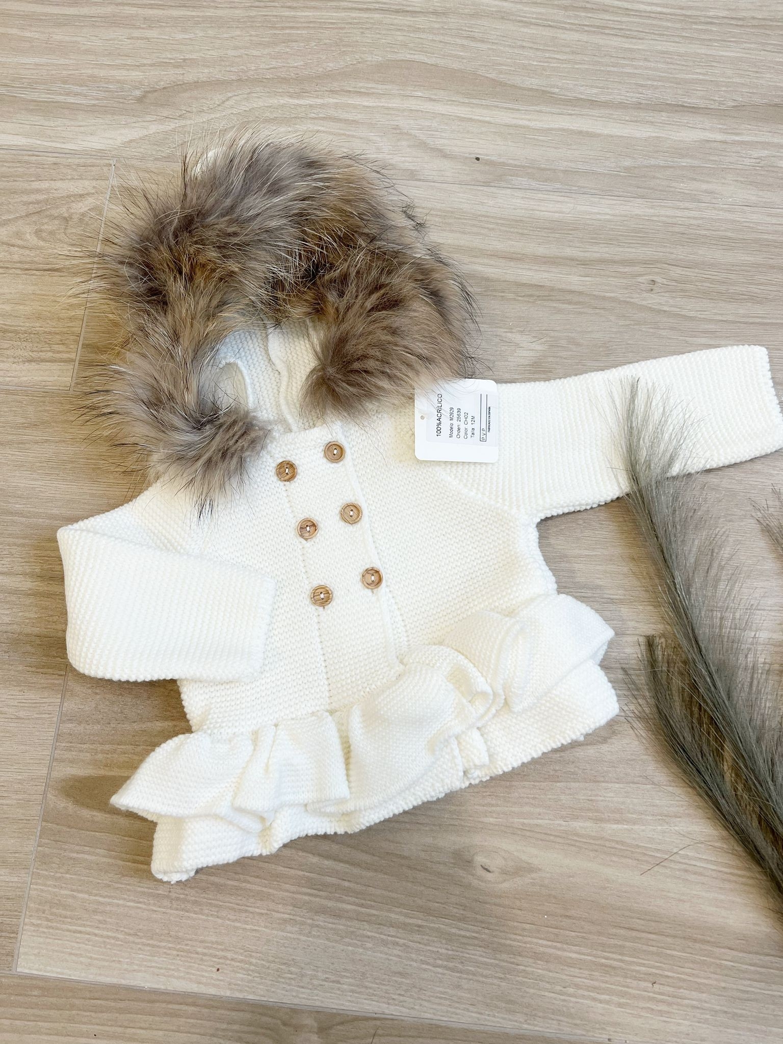 Trenca de punto bobo.Pelo natural.El pelo lo podemos quitar.,Medidas:T. 3m: sisa 23 cm – manga desde cuello 22,5 cm – largo 25 cmT. 6m: sisa 25,5 cm – manga desde cuello 26 cm – largo 27,5 cmT. 12m: sisa 27,5 cm – manga desde cuello 30 cm – largo 28 cmT. 18m: sisa 30 cm – manga desde cuello 31 cm – largo 30,5 cmT. 24m: sisa 31 cm – manga desde cuello 33 cm – largo 34 cmT. 36m: sisa 34 cm – manga desde cuello 35 cm – largo 37 cmT. 4 años: sisa 35 cm – manga desde cuello 37,5 cm – largo 39 cm