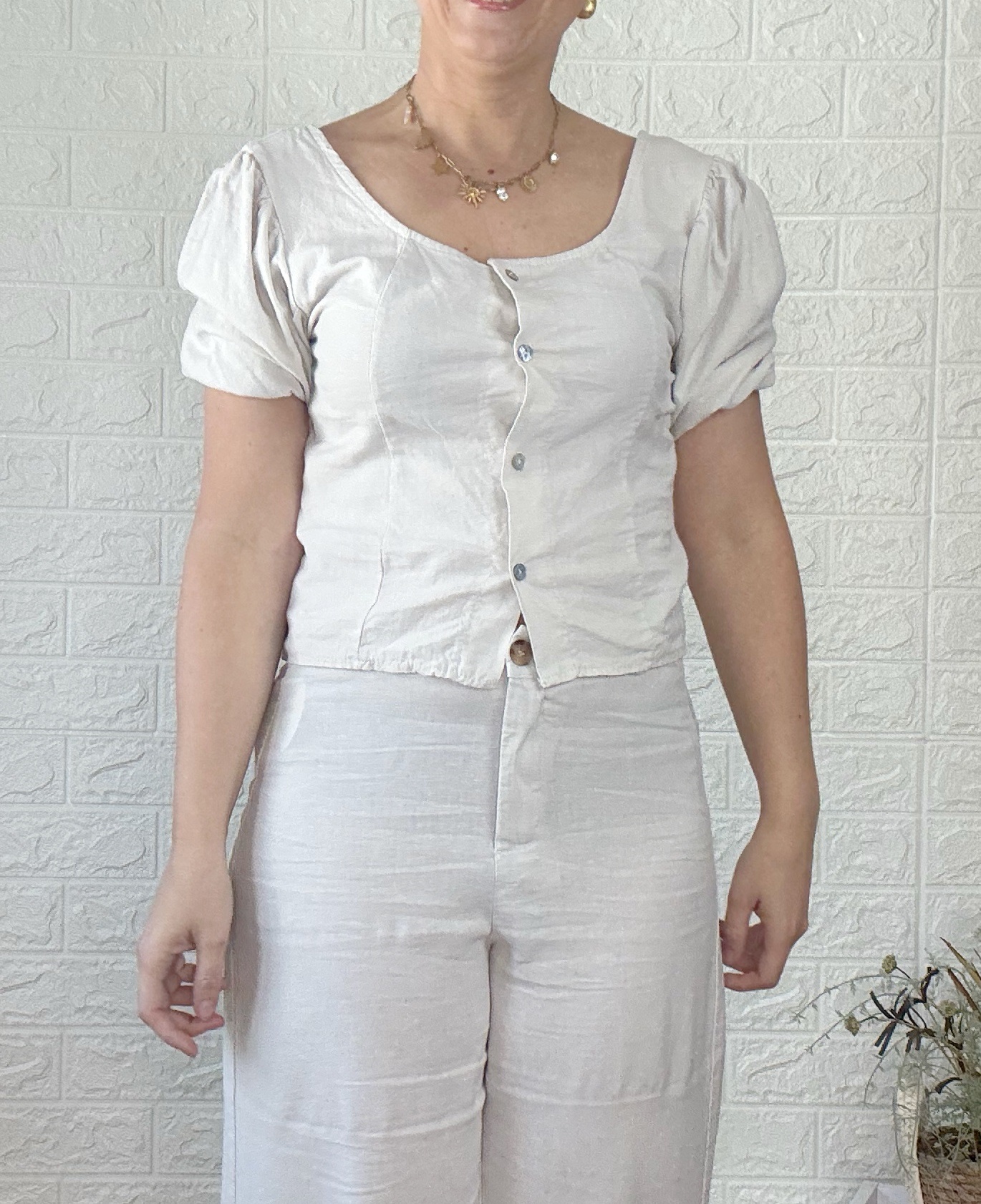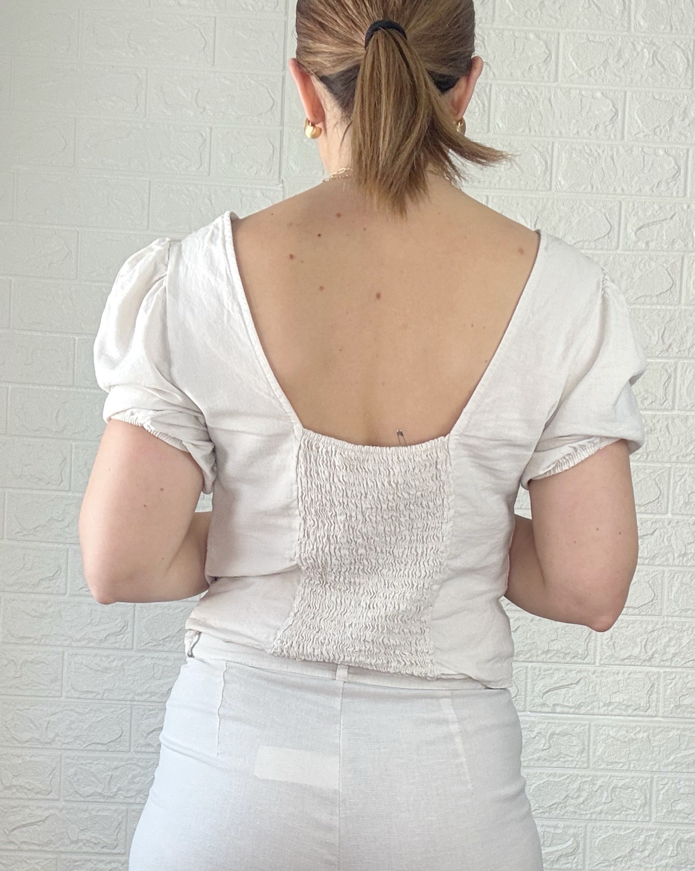 Blusa con botones y espalda escotada.