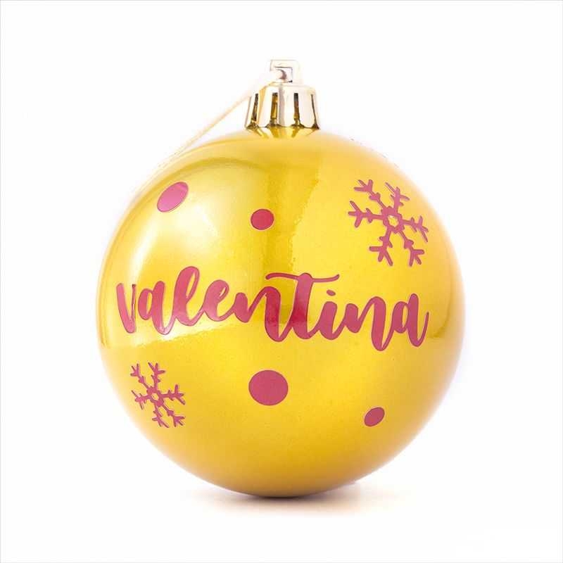 PONER EL NOMBRE EN OBSERVACIONES- Diámetro 8 cm- Material plástico- Incluye cinta para colgar- Se personaliza con vinilo adhesivo color rojo y con la tipografía que se ve en la imagen- La personalización incluye la decoración que se ve en la imagen- Máximo 9 caracteres- No aptas para nombres compuestos- No se pueden personalizar con todas las letras mayúsculas- El tiempo de producción de este artículo es de 5 días laborables aproximadamente- Se puede añadir como extra una bolsita de algodón orgánico para regalo de 14 x 22 cm con el texto Feliz Navidad como se ve en la imagen. Debido al proceso de fabricación de las bolas los colores perlados (rosa perla plata perla dorado perla y verde perla) pueden presentar irregularidades en el color a lo largo de su superficie. Intentaremos siempre que éstas queden en la parte posterior de la misma donde no se encuentra la personalización.