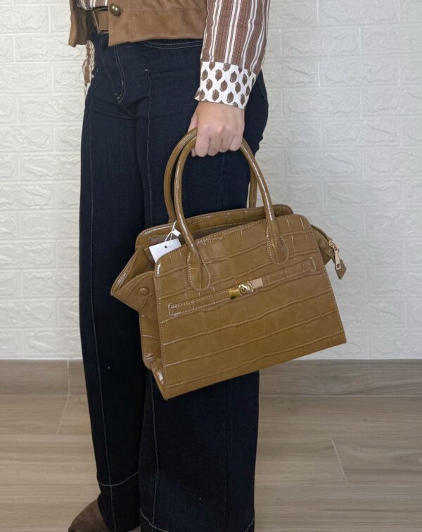 Se puede llevar de mano, y también tiene asa larga para cruzar.