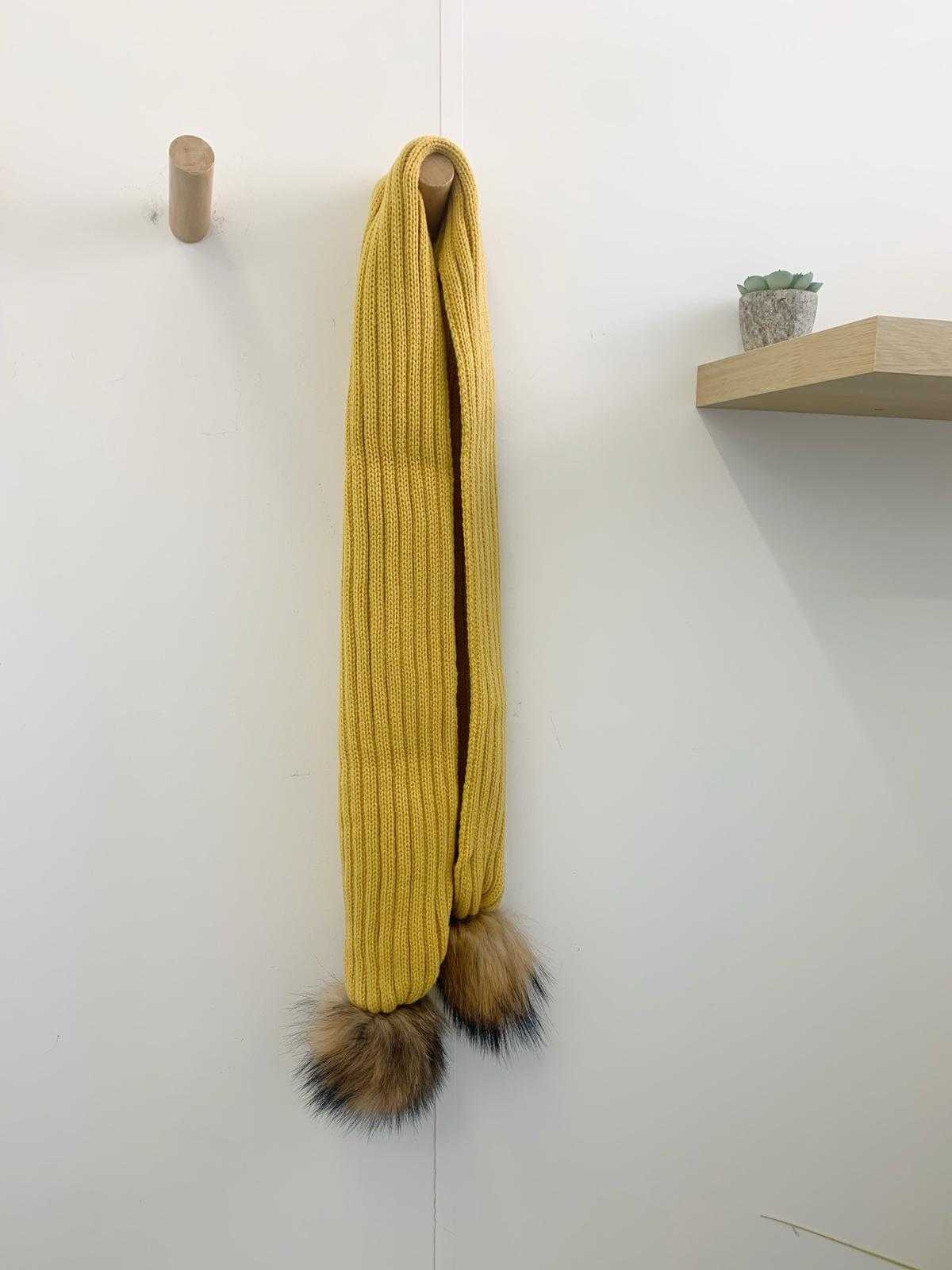 Sé el primero en revisar "Bufanda canalé dos pompones mostaza"