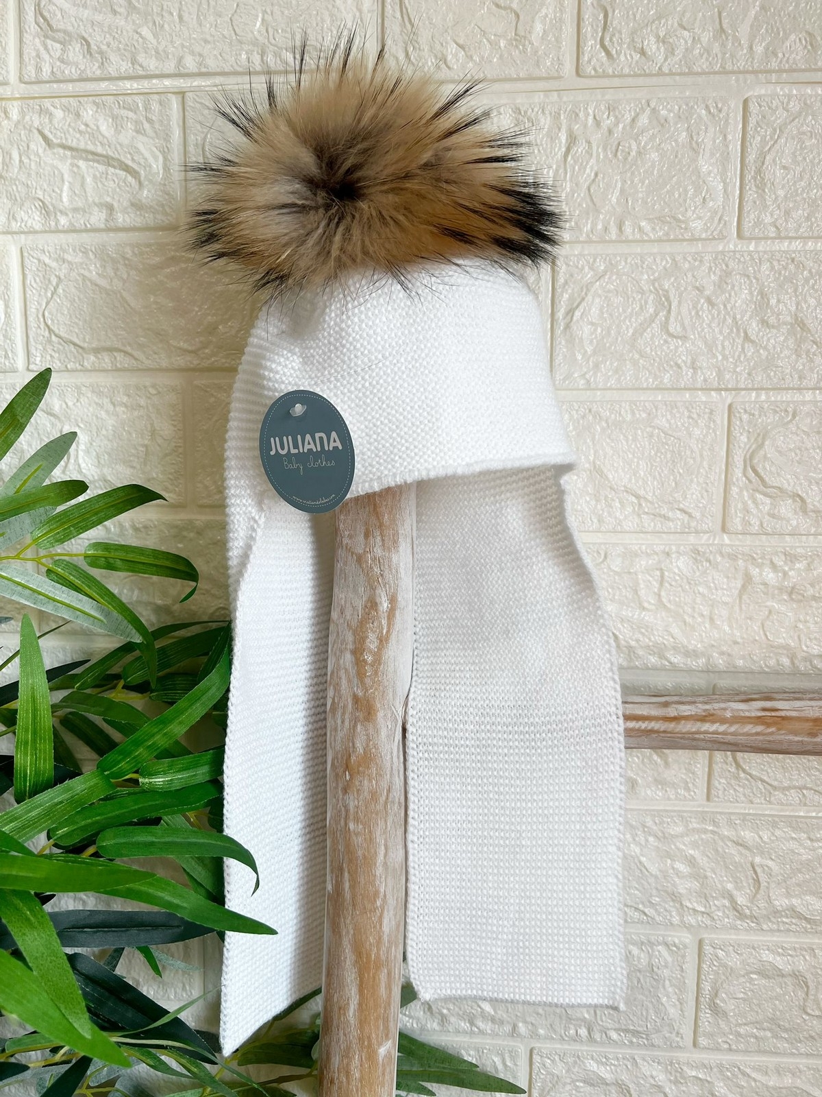 Sé el primero en revisar "Bufanda con gorro unido pompón blanco"