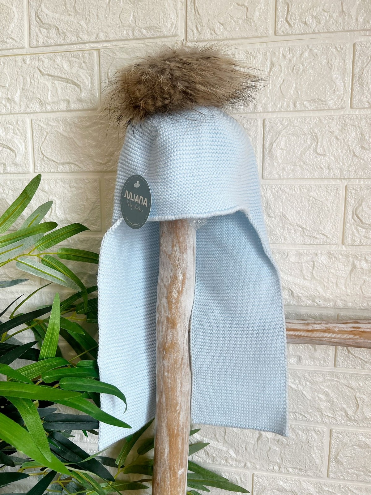 Sé el primero en revisar "Bufanda con gorro unido pompón celeste"
