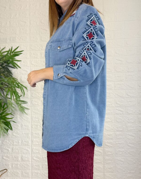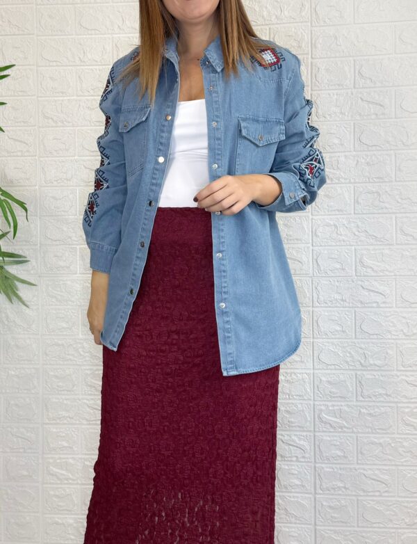 Se puede llevar a modo de camisa cerrada con los corchetes, o a modo de sobrecamisa abierta.