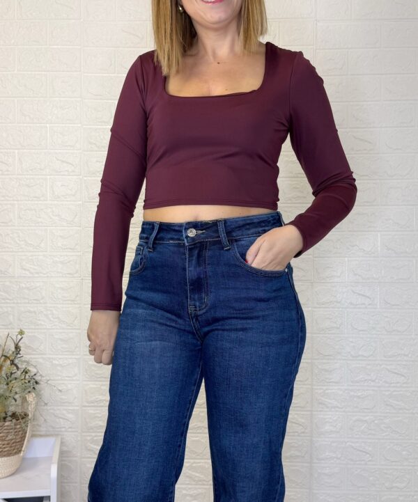 Camiseta de licra con escote cuadrado muy favorecedor.