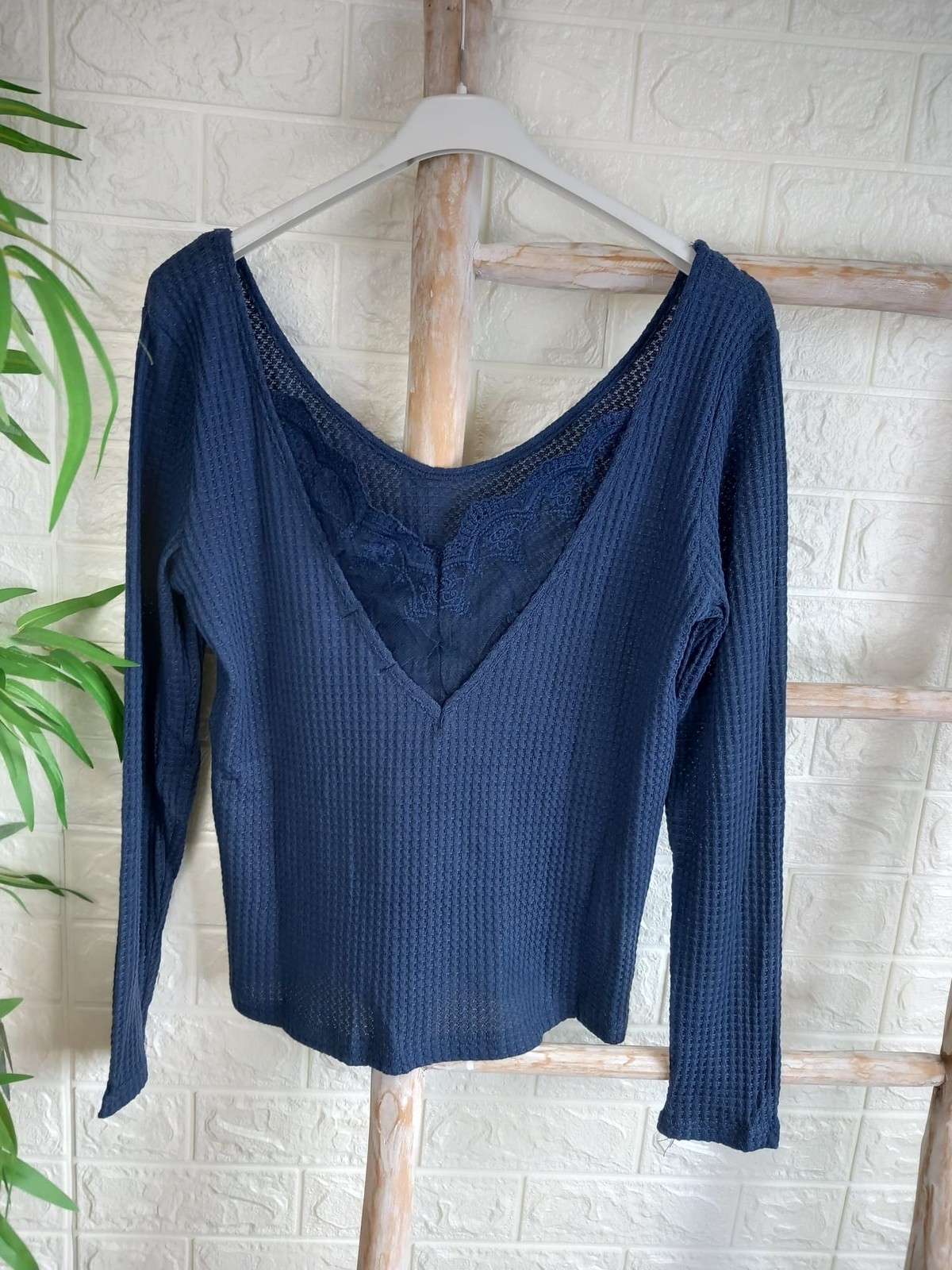 Camiseta manga larga con escote de encaje en la espaldaMedida T. M/L: sisa 48 cm ,largura 60 cmT. XL/XXL: sisa 51 cm largura 63 cm