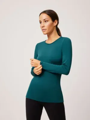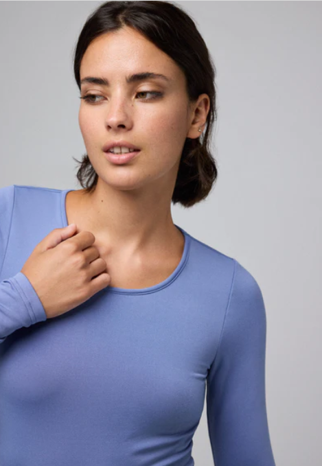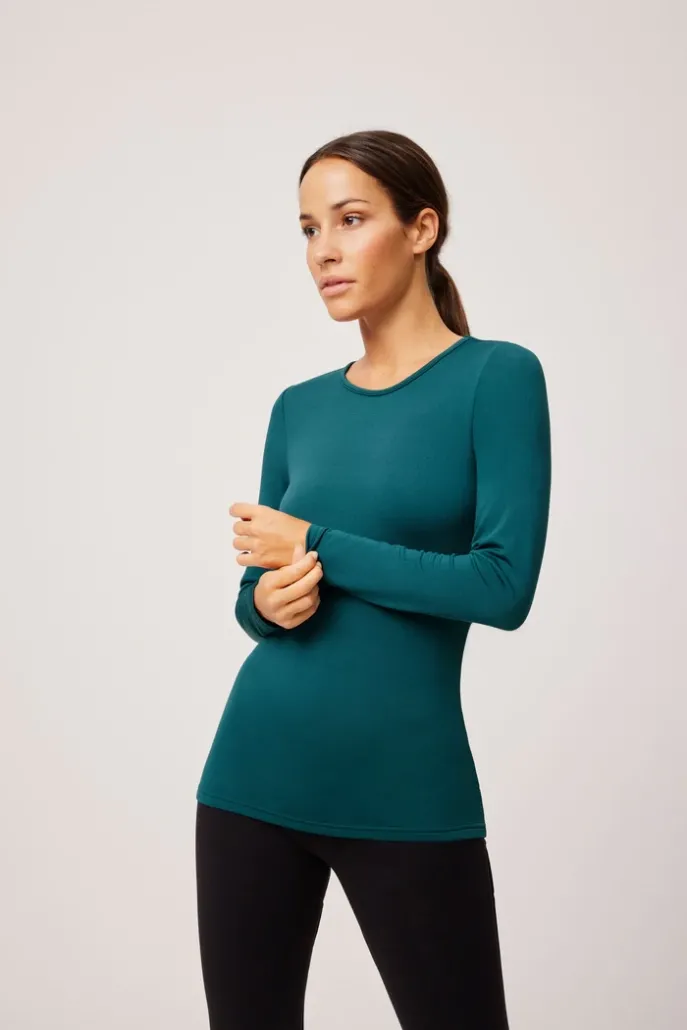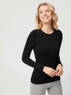 Camiseta térmica de manga larga para mujer, ideal para mantener una temperatura confortable en días fríos gracias a su nivel de termicidad. Confeccionada en tejido térmico suave y agradable al tacto, ofrece un ajuste ceñido que favorece la retención de calor y la comodidad bajo cualquier prenda. Su diseño básico y liso, junto con el cuello redondo, la convierte en una prenda versátil para el uso diario durante el invierno.