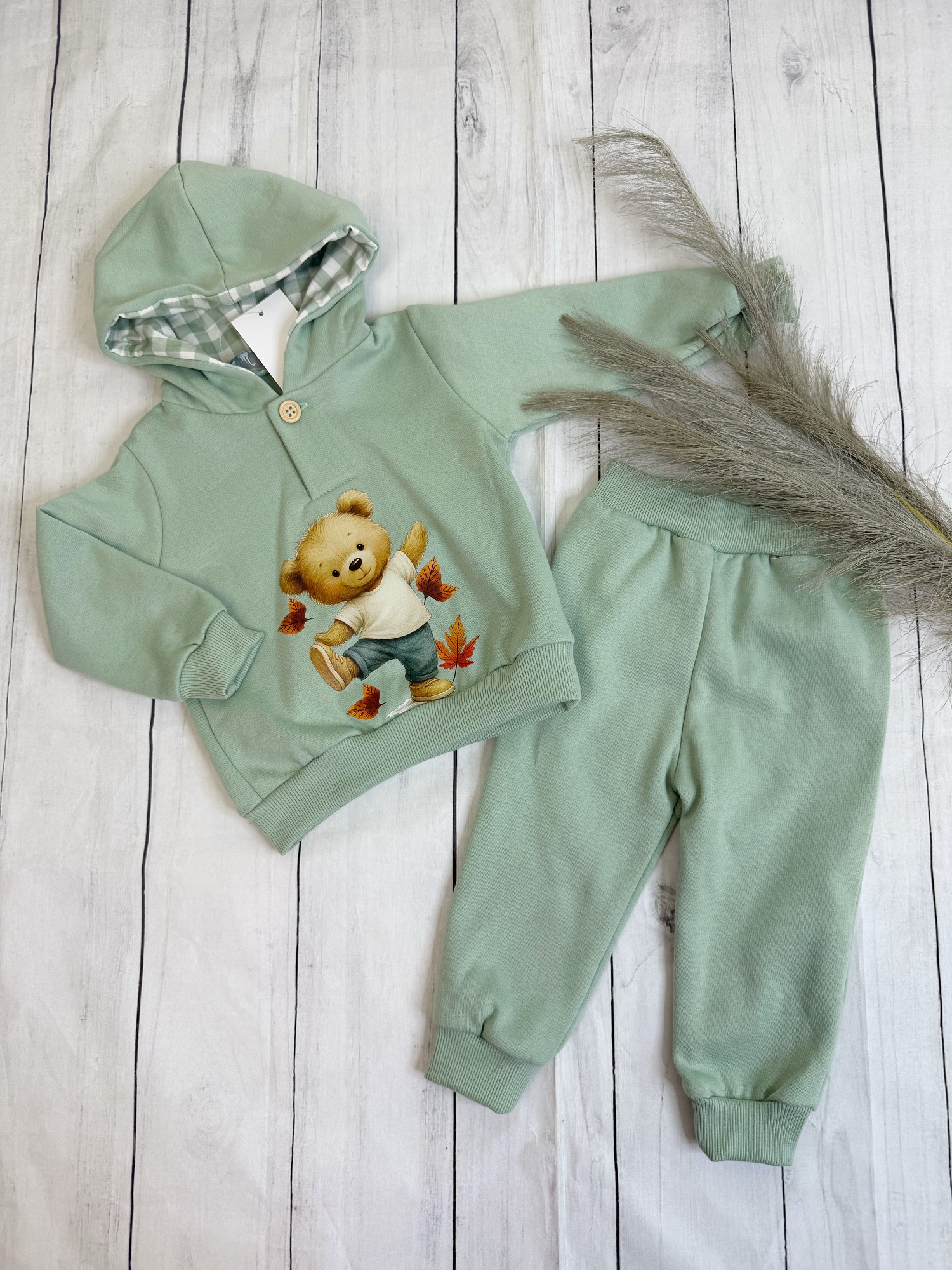 Compuesto por sudadera y pantalón.