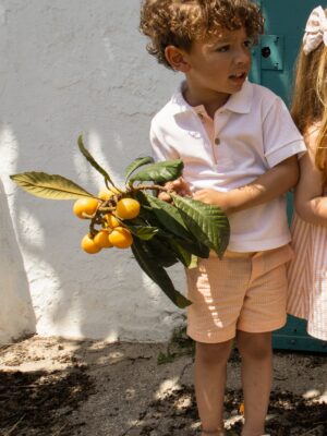 Conjunto compuesto por polo y bermuda.