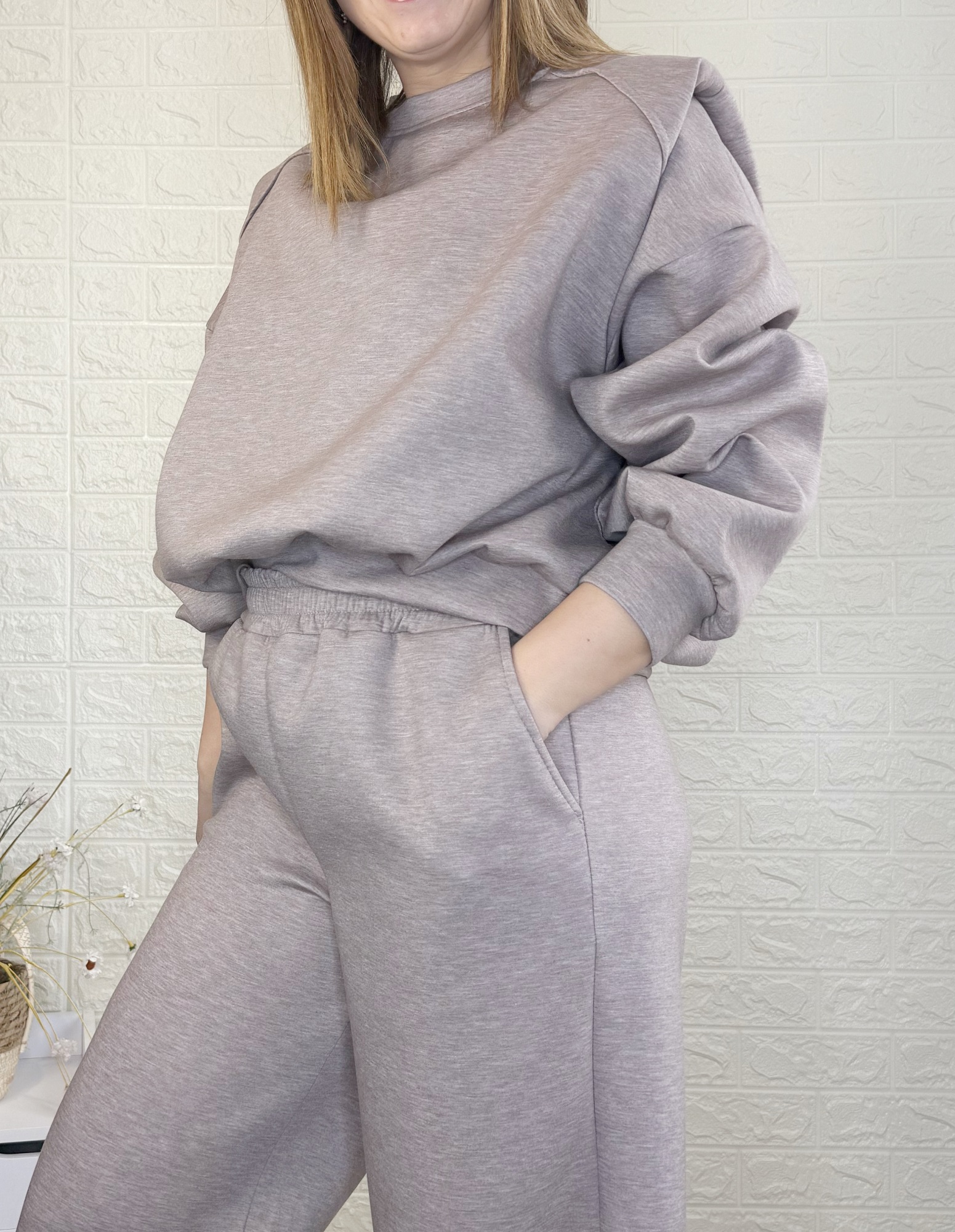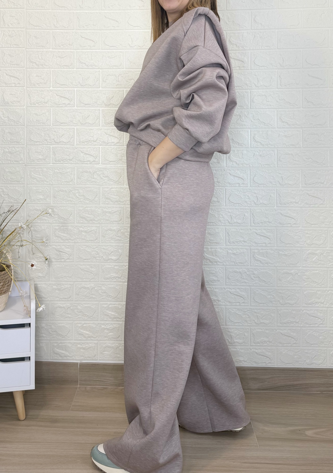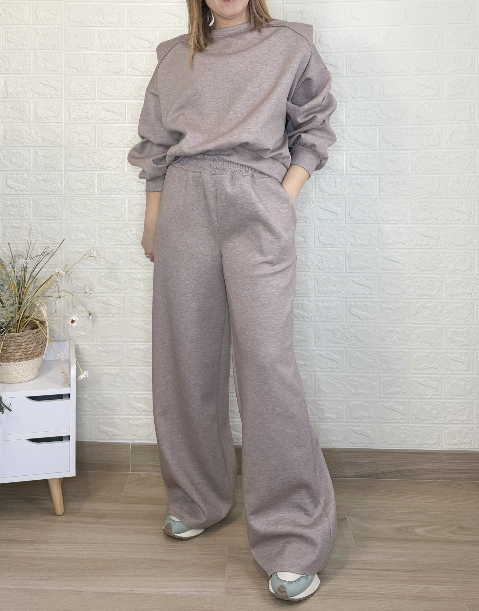 Conjunto de dos piezas compuesto por sudadera y pantalón.