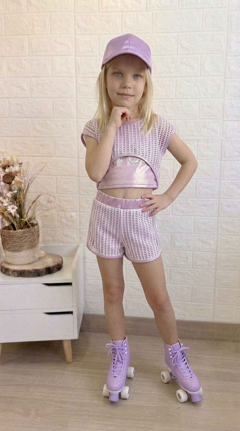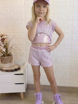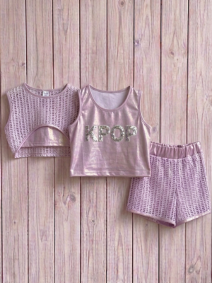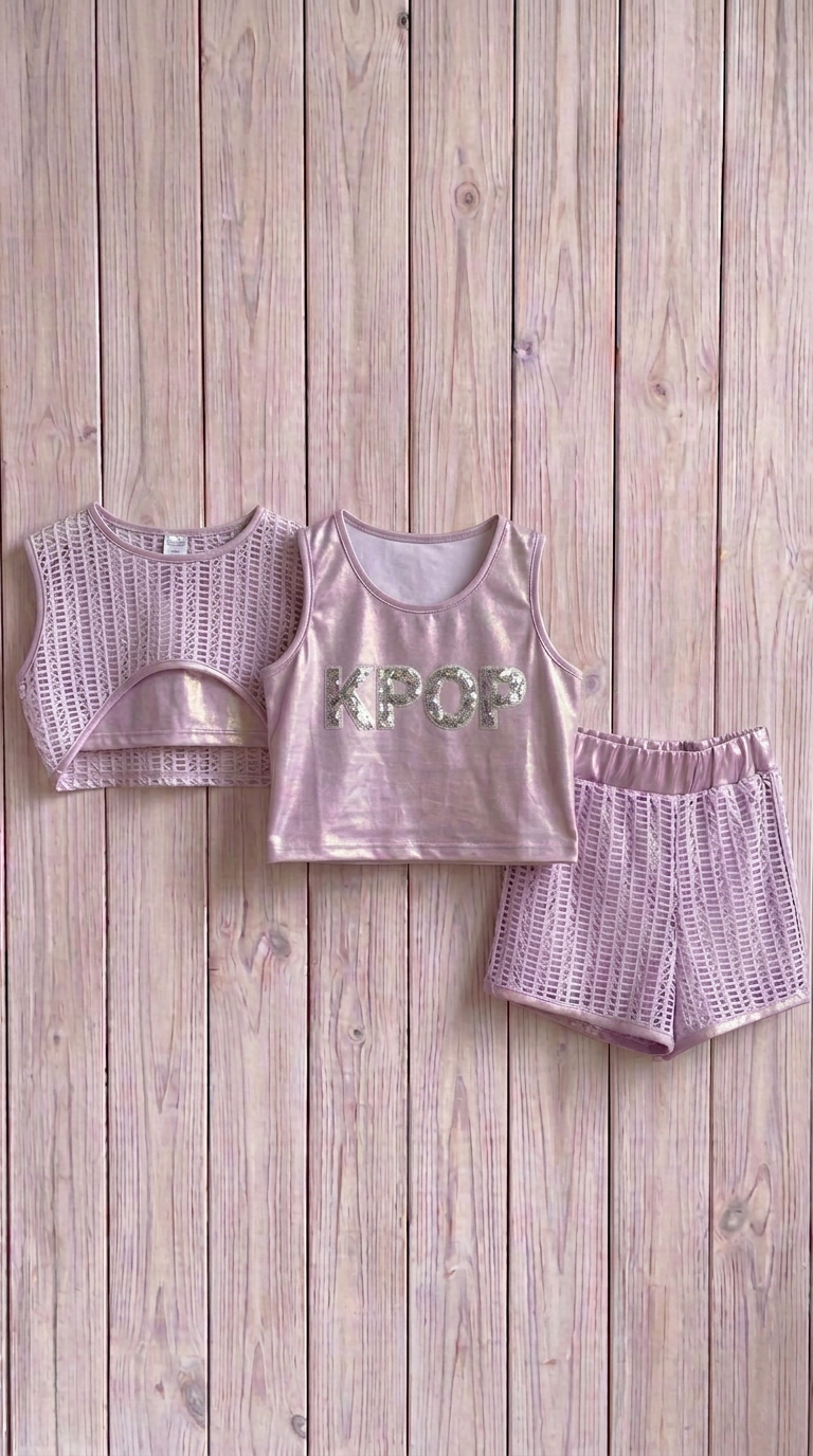 Conjunto compuesto por tres piezas. Short, camiseta sin mangas y camiseta red.