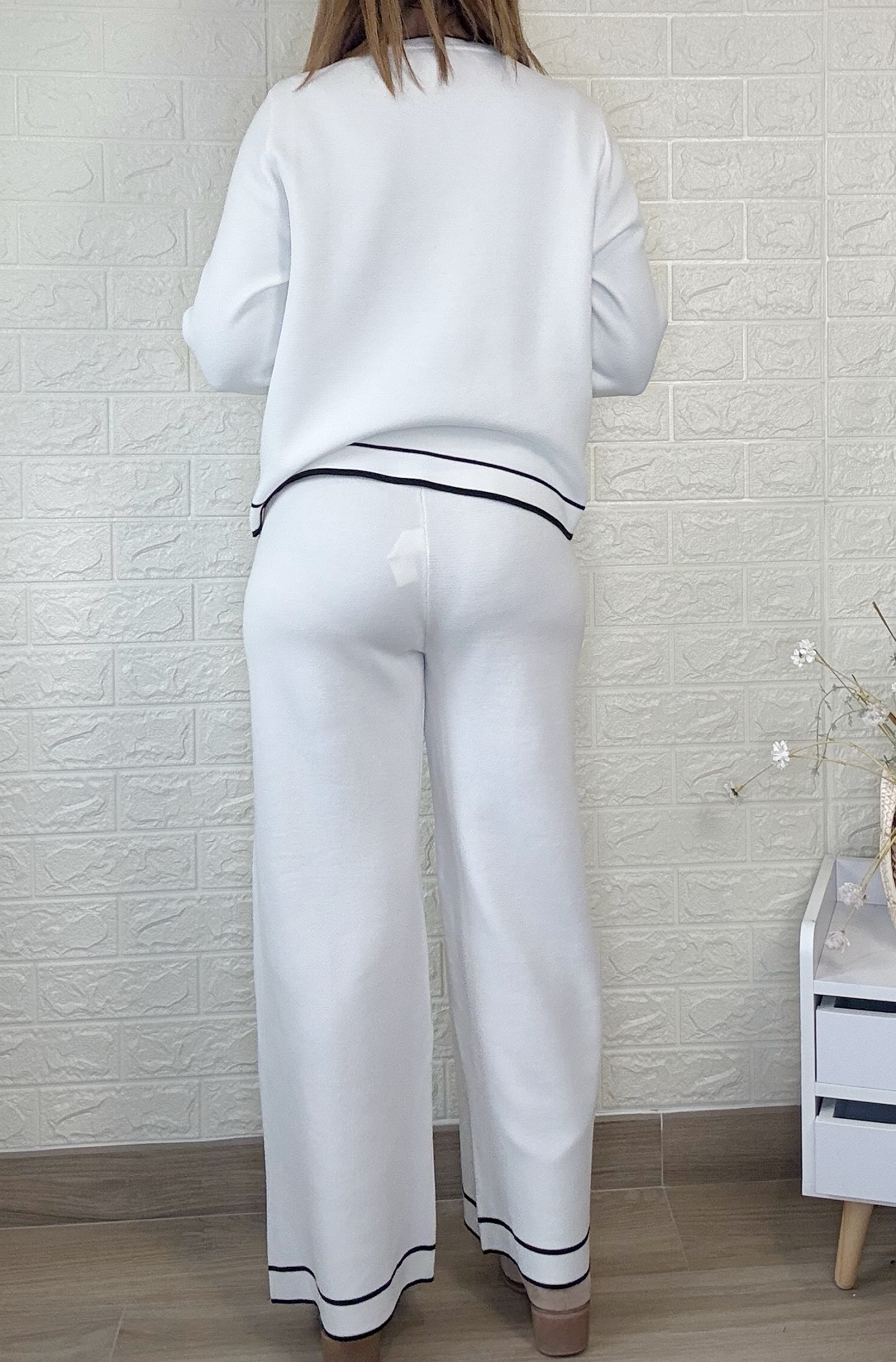 Conjunto de punto compuesto por jersey y pantalón.