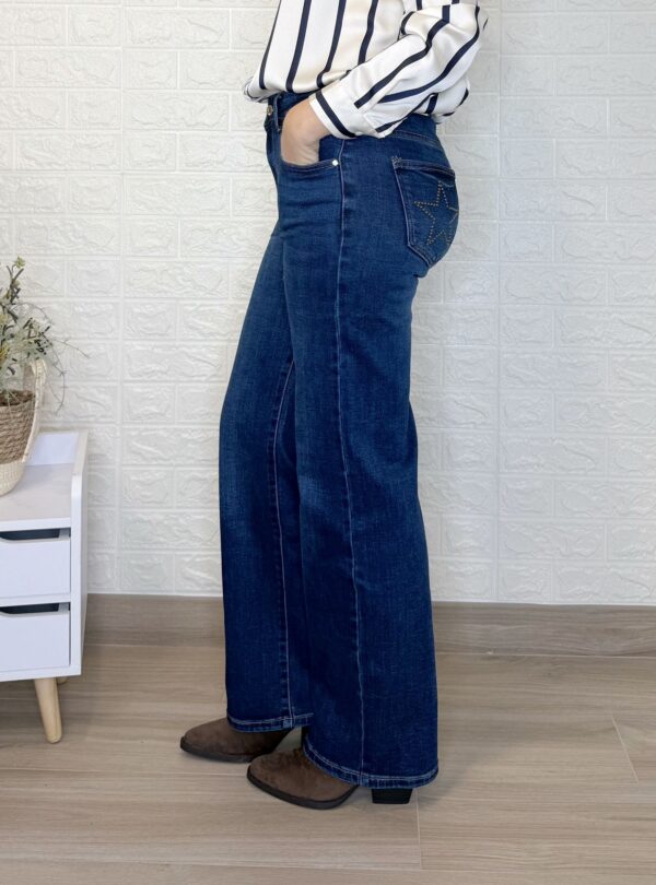 Pantalón vaquero con detalle de estrella con tachuelas detrás.
