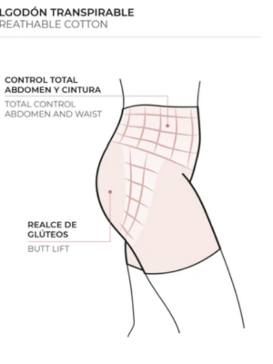Faja alta reductora de alta compresión que moldea la figura en abdomen, caderas y piernas, ofreciendo un efecto reductor visible. Confeccionada en algodón con elastano, es transpirable, cómoda y se adapta al cuerpo. Su diseño de cintura alta proporciona una cobertura favorecedora y sus costuras invisibles permiten llevarla bajo cualquier prenda sin que se note.