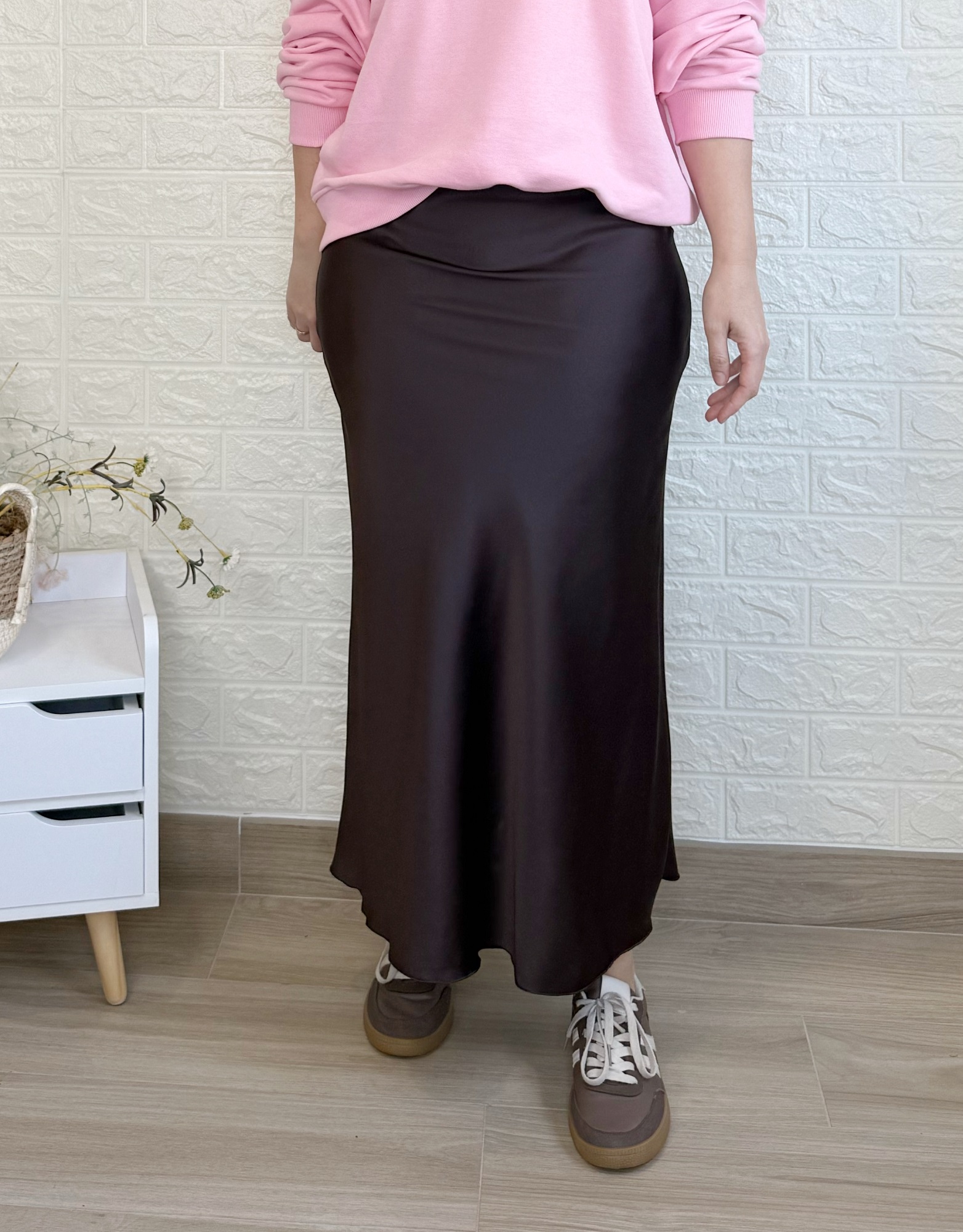 Falda satinada Jana marrón
