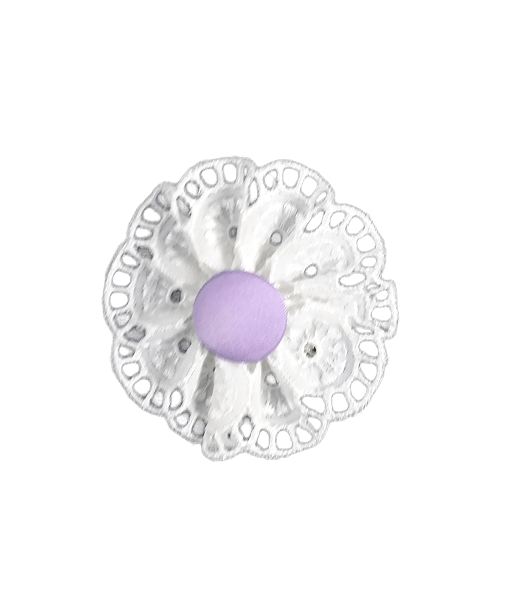 Coletero circular de 8,5 cm de diametro con pinza. Cosido a mano botón central forrado en faya de 1ª calidad.
