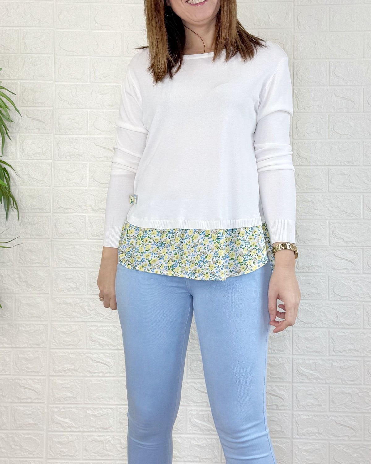 Jersey fino de hilo.Medidas:T. M/L: sisa 48,5 cm – hombro 41 cm – manga desde hombro 60 cm – largo 61 cmT. L/XL: sisa 49 cm – hombro 43 cm – manga desde hombro 60 cm – largo 61,5 cm80% viscosa 20% elastano