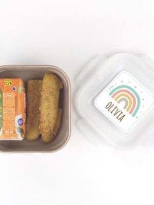 Poner nombre en observaciones.Al ser personalizado no se puede devolver y no es posible contrareembolso.Es un pack cerrado no se pueden modificar los colores de las fiambreras ni los diseños.- Material: polipropileno. Libre de BPA- Tamaño: 15x15x6,3 cm. Capacidad 0,7 L- Cierre 100% hermético Personalización:- Se personaliza con vinilo adhesivo- La pegatina es resistente al lavavajillas siempre que se lave en la bandeja superior y a un máximo de 45ºC- Para alargar la vida de la pegatina se recomienda lavar la zona donde está adherida la pegatina a mano con mucho cuidado y sin frotar. No usar estropajos o detergentes abrasivos- No hervir ni esterilizar. Apto para microondas.- Máximo 20 caracteres en 2 líneas