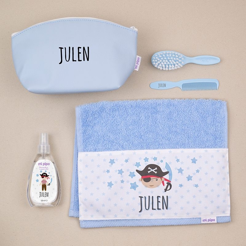 Poner el nombre en observacionesA ser un artículo personalizado no se puede devolverContenido:- Neceser de polipiel personalizado bordado- Toallita de rizo 100% algodón 50x30cm personalizada estampada- Cepillo y peine personalizados- Colonia 150ml personalizada- Máximo 10 caracteres