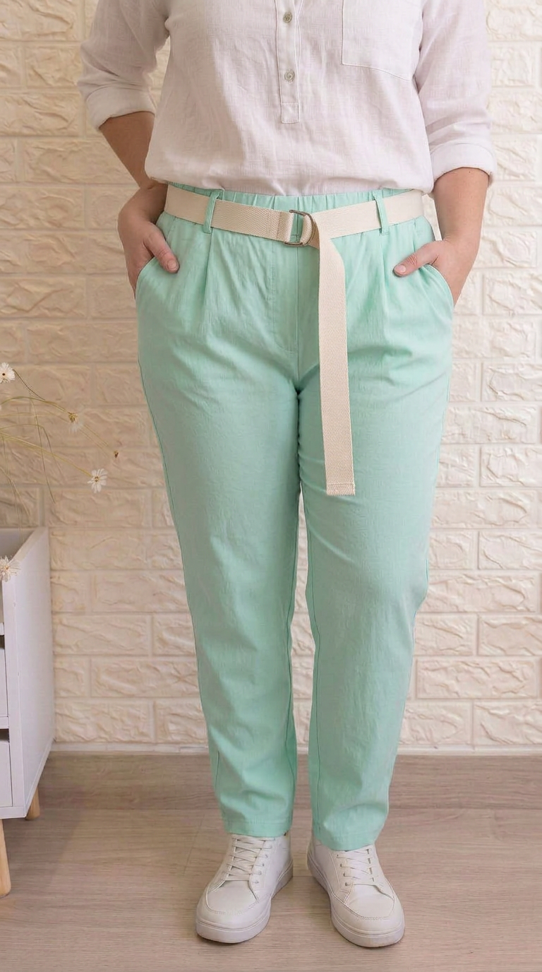 Es un pantalón elástico muy cómodo. Incluye cinturón.