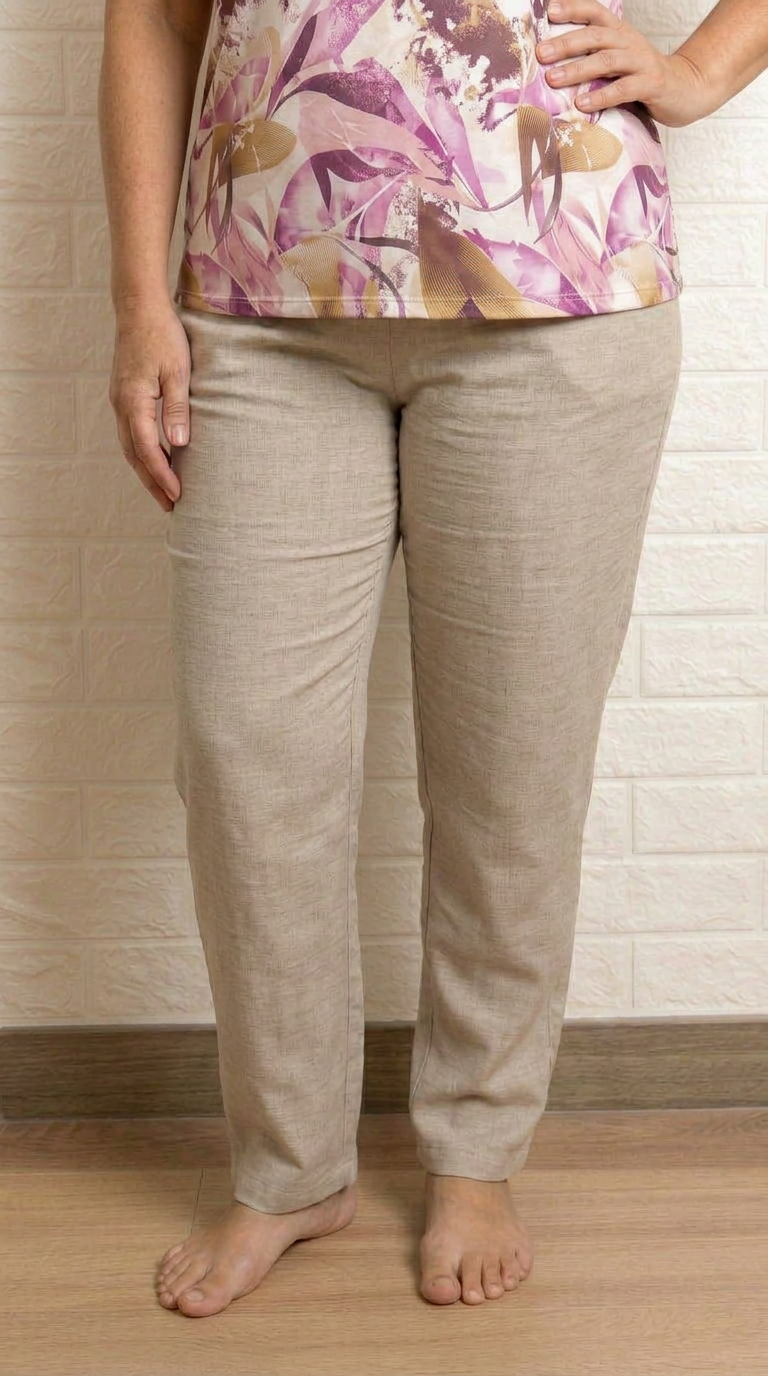 Pantalón con cintura con goma efecto lino, y bolsillos.