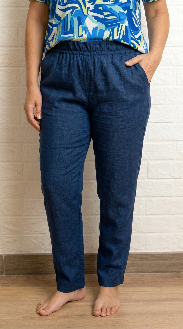 Pantalón con cintura con goma efecto lino, y bolsillos.