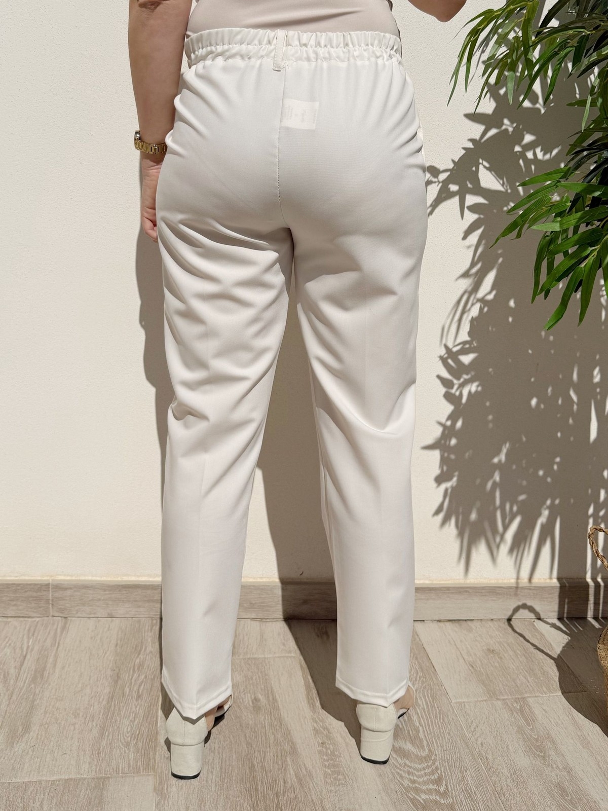 Pantalón de tejido de vestir. Tiene goma en cintura.Medidas:T. S: 34/36T. M: 38T. L: 40T. XL: 4270% poliéster 25% viscosa 5% elastan