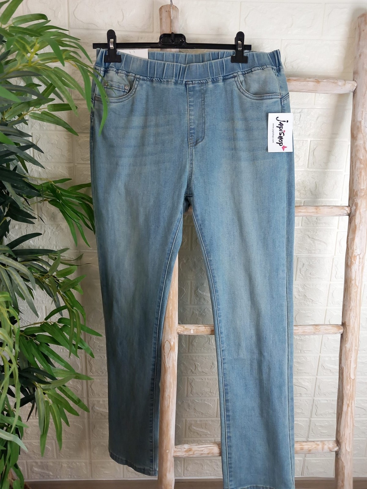 Pantalón vaquero claro con gomas en cintura Medidas T. 50: cintura 41 cm largura 104T. 52: cintura 43 cm largura 106