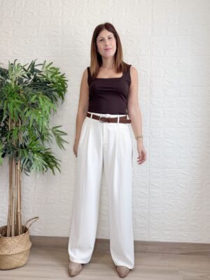 Pantalón de tejido fluido. Incluye cinturón.Medidas:T. XS: cintura 31 cm – cadera 58 cm largura 100 cmT. S: cintura 35 cm – cadera 62 cm – largo 101,50 cmT. M: cintura 36,5 cm – cadera 64 cm – largo 102 cmT. L: cintura 39 cm – cadera 65 cm – largo 103 cm