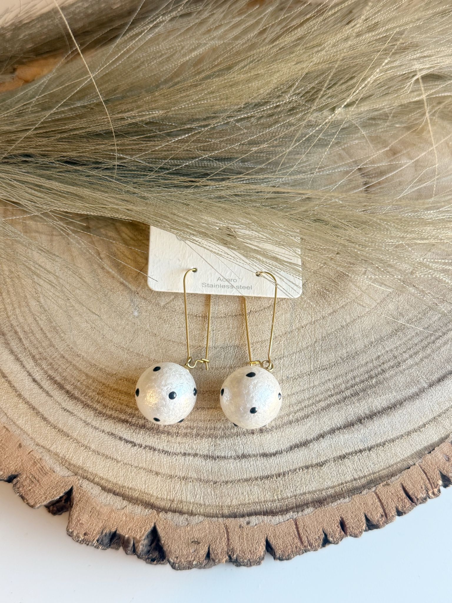 Pendientes bola nacar puntos negros