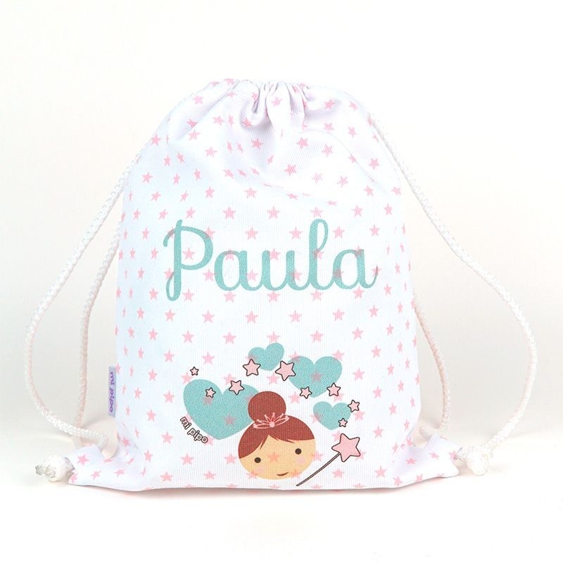 Poner el nombre en observaciones.Al ser un artículo personalizado no se puede devolver.- Fabricados en España – Tejido de piqué canutillo 100% algodón – Cierre de cordón – Apto para lavadora – Medidas aprox: 32x24cm – Máximo 20 caracteres en 2 líneas – Se personaliza estampado
