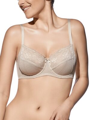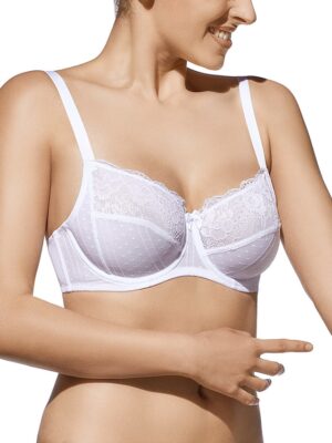 Sujetador con aros sin relleno que combina un tejido con franjas y puntos con la copa de encaje.Marca: Selene