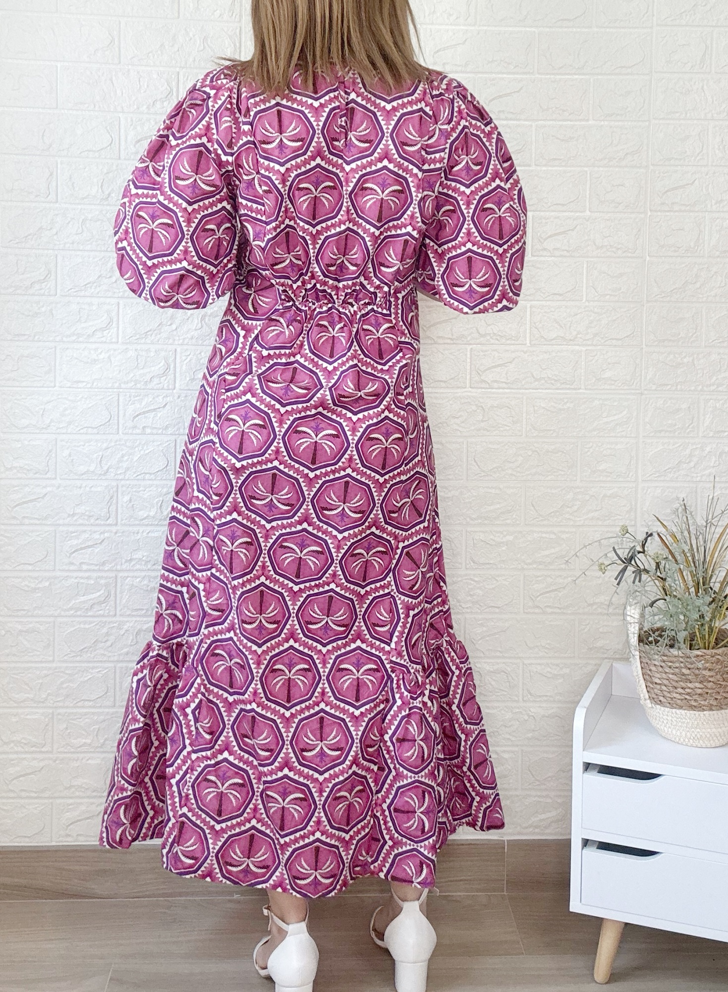Vestido con detalle de manga abullonada.